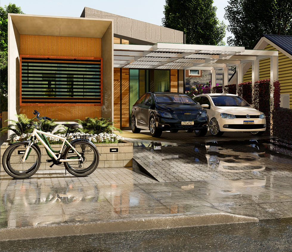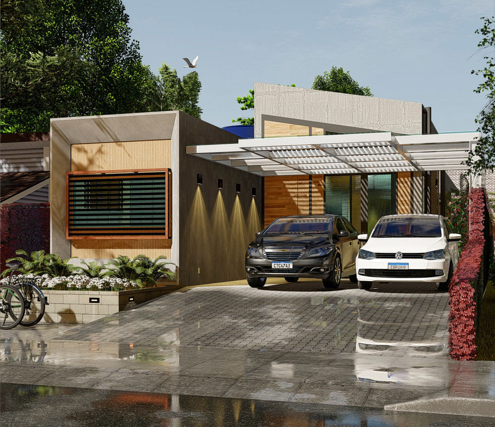 volumes e materiais puros trazem modernidade e leveza ao conjunto, trazendo uma fachada contemporânea com a volumetria da sala, que traz movimento e luminosidade, o cuidado com os detalhes, a simplicidade das soluções e a complexidade do programa de necessidades além das limitações financeiras e temporais completaram o pacote arquitetônico desse projeto.